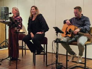 ‘Was echt een heel gevarieerde avond. Annemieks prachtige zang, Yvonnes leuke verhalen en een top gitarist. We zeiden de op terugweg: ‘Wie hebt pien in de pokkel en pens van het lachen en genieten … ‘